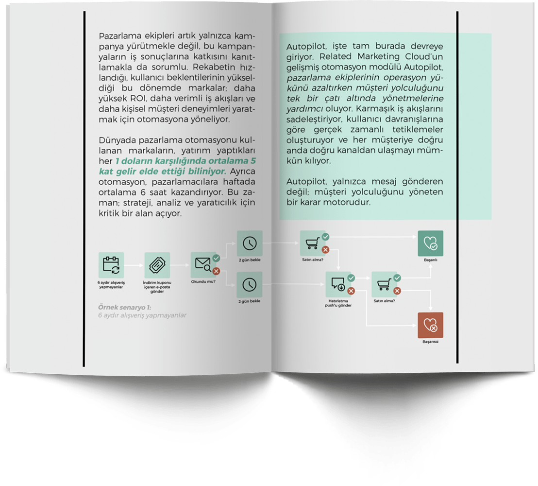 Bu e-book, e-posta, SMS, push ve onsite deneyimlerini tek bir akışta birleştirerek dönüşümleri hızlandıran modern otomasyon yaklaşımını pratik örneklerle anlatıyor. Kampanyalarını daha akıllı ve hızlı hale getirmek isteyen tüm markalar için hazırladık. Otomasyon gücünü kampanya performansına dönüştürmek isteyen tüm ekipler için ideal bu rehberi şimdi indirin, yeni dönem kampanyalarınızı Autopilot hızında tasarlayın.